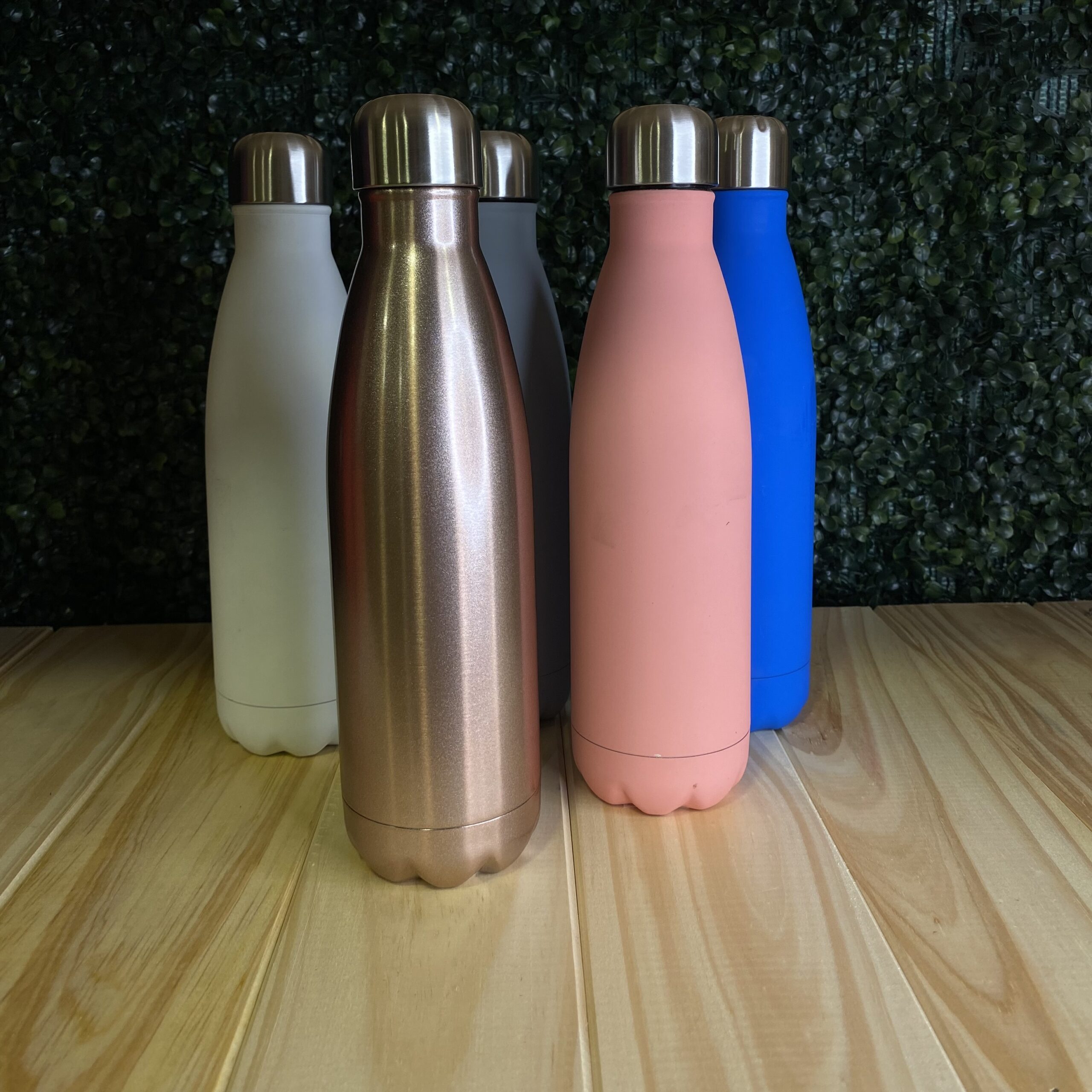 Posee una capacidad 500 ml y tapa metálica a rosca y resulta ideal para actividades al aire libre. No se genera condensación en su exterior (no transpira), por lo que es apta para llevar en bolsos y mochilas sin mojar el interior.