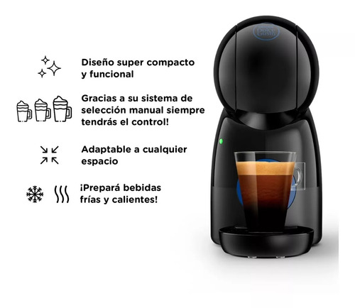 Su capacidad de 1 litro y compatibilidad con cápsulas Dolce Gusto la hacen práctica y versátil.