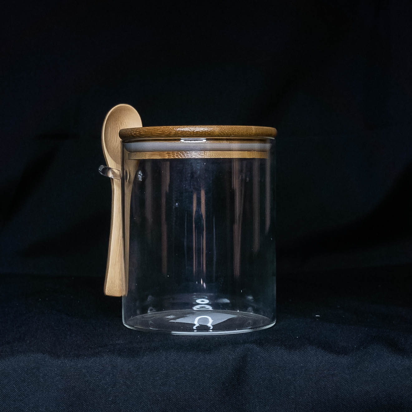 DULCERA VIDRIO T/MADERA Y CUCHARA 650ml.