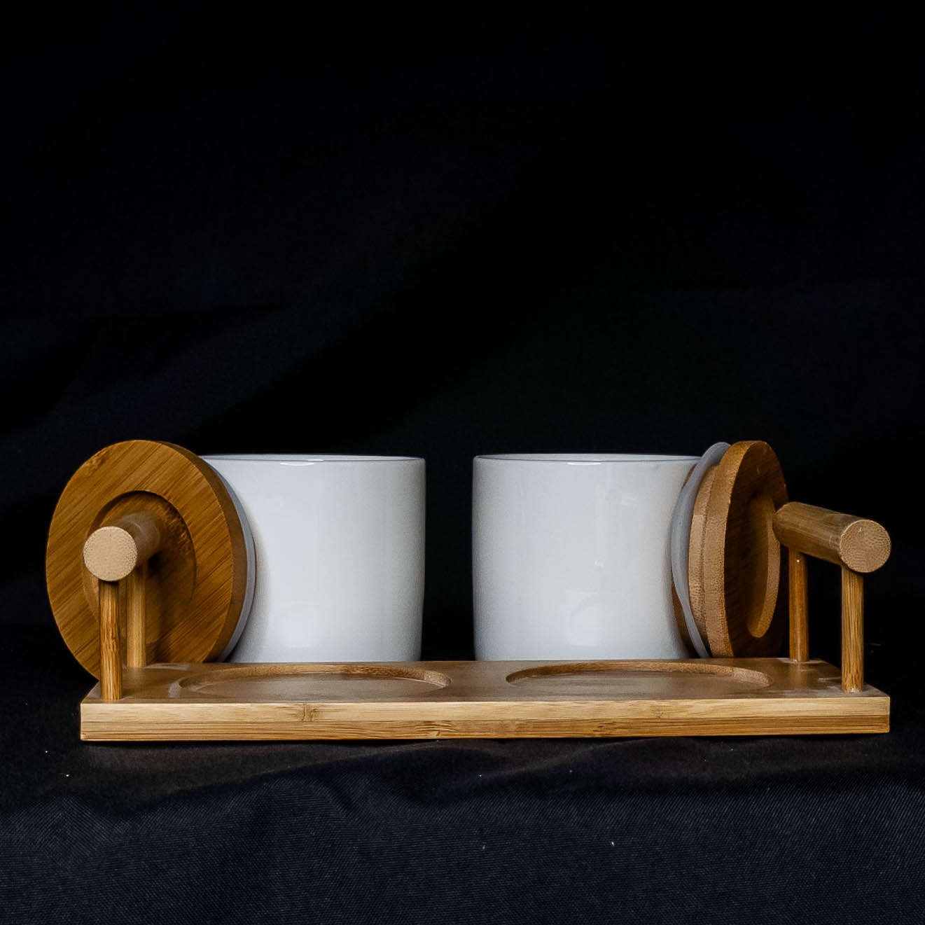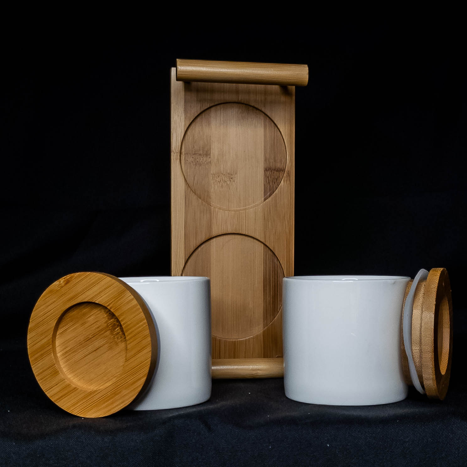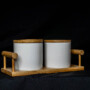 Contenido del Set: 2 frascos de cerámica con base de bambú